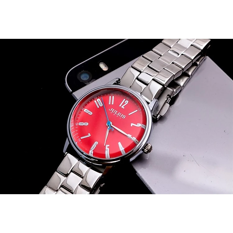 Đồng Hồ Nữ JULIUS JA-859LB Dây Kim Loại (Bạc Mặt Đỏ)