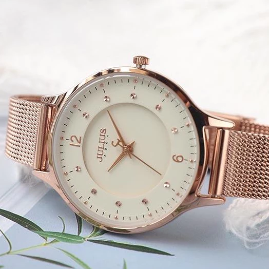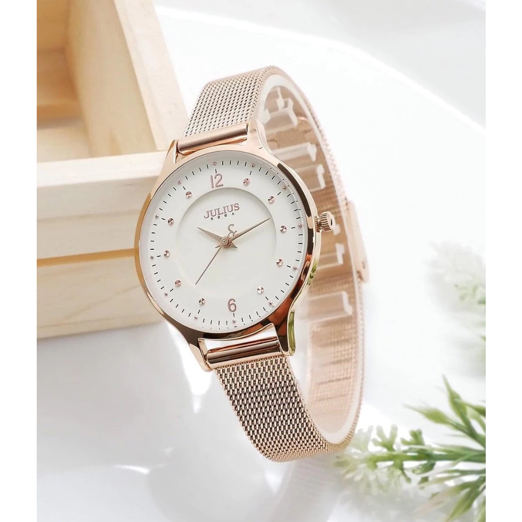 Đồng Hồ Nữ JA-1060 Julius Hàn Quốc Mặt size 3cm Dây Thép (Đồng mặt trắng)