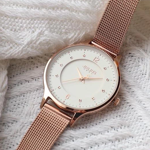 Bạn đang chuyển đến trang bán sản phẩm Đồng Hồ Nữ JA-1060 Julius Hàn Quốc Mặt size 3cm Dây Thép (Đồng mặt trắng)