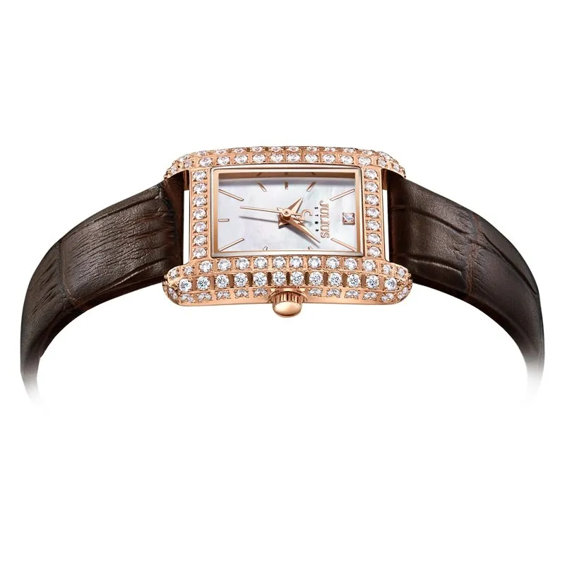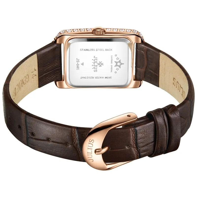 Đồng Hồ Nữ JS-046A Kính Sapphire Julius Hàn Quốc Dây Da (Nâu)