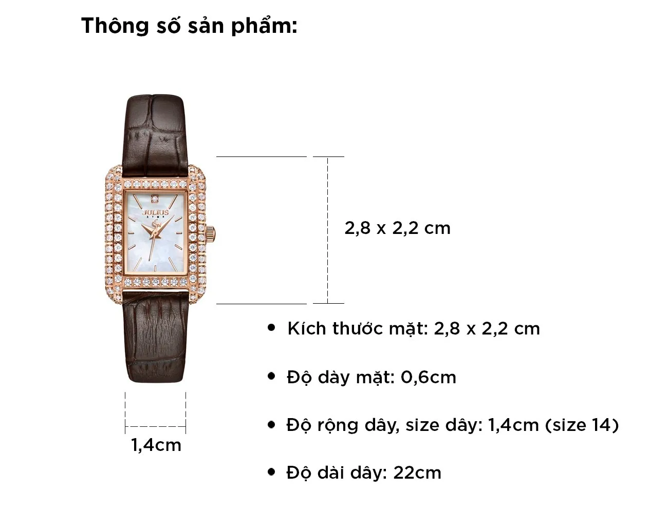 Đồng hồ nữ JS-044A kính Sapphire Julius Hàn Quốc dây da | Meta |