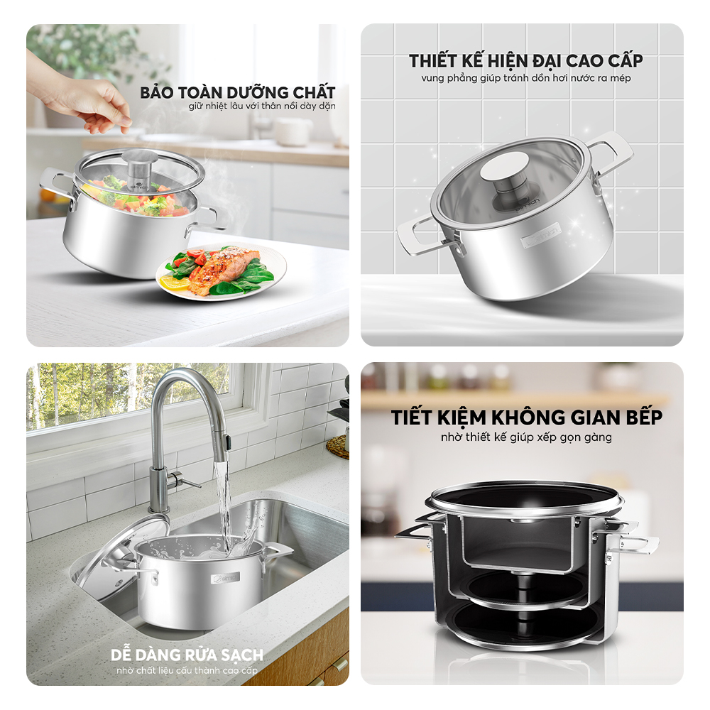 Bộ nồi Inox liền khối Elmich Hera EL-8135IN size 18, 22 chảo 26cm