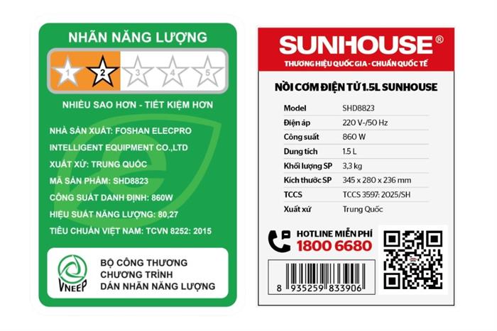 Nồi cơm điện tử Sunhouse 1.5 lít SHD8823