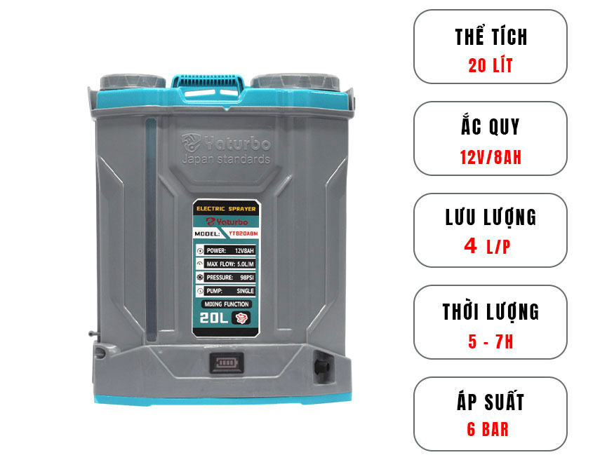 Bình xịt điện Yaturbo YTB20A8M (1 bơm, đảo thuốc)