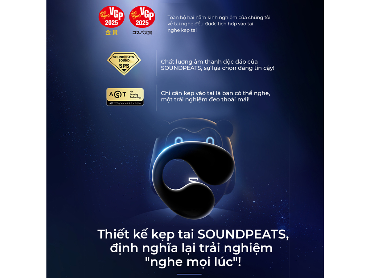 Tai nghe Bluetooth Open-Ear SoundPEATS PearlClip Pro