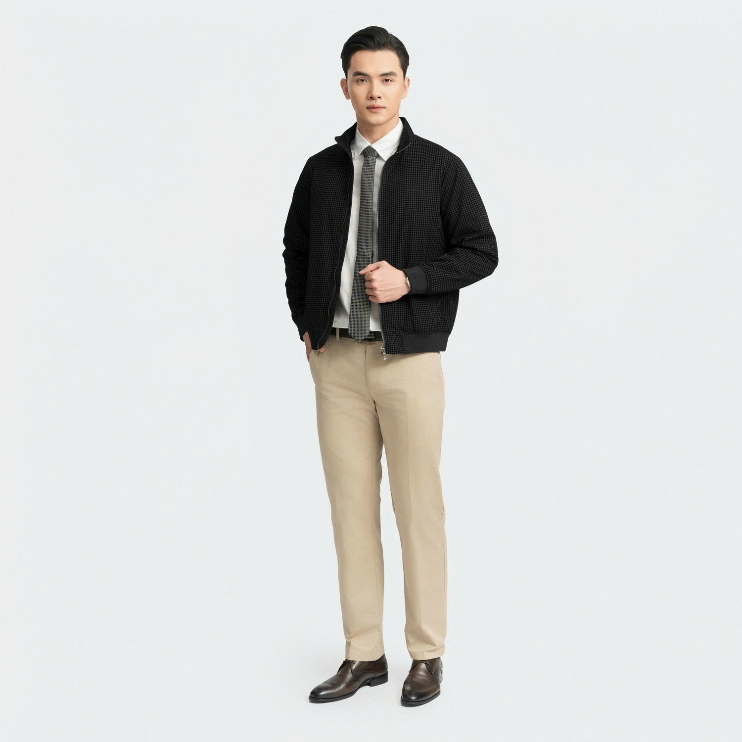 Áo khoác 2 lớp Aristino AJK001BZ màu Đen 1 kẻ