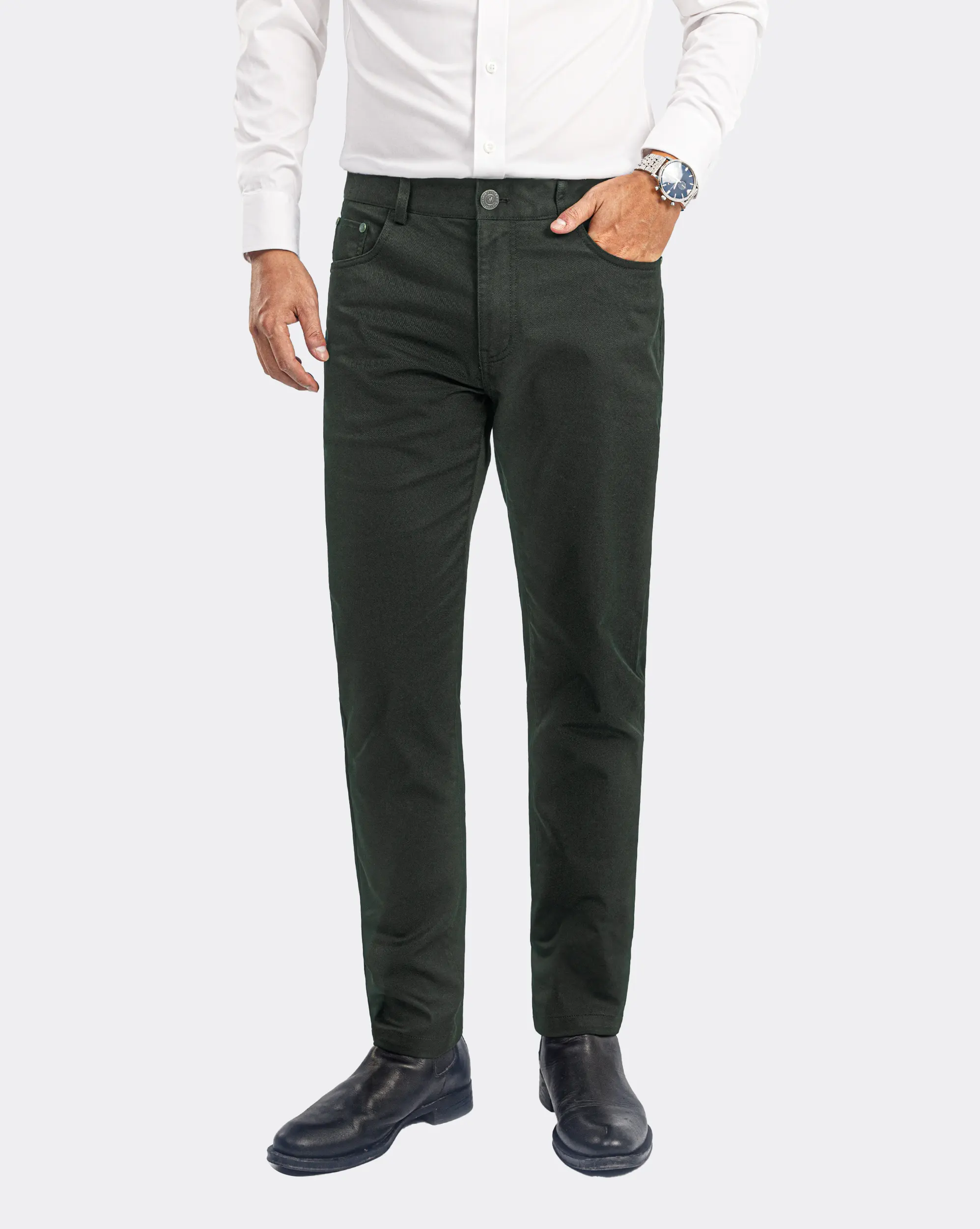 Quần kaki carrot fit vải trơn màu xanh rêu 3003E