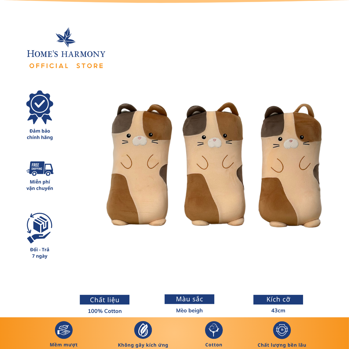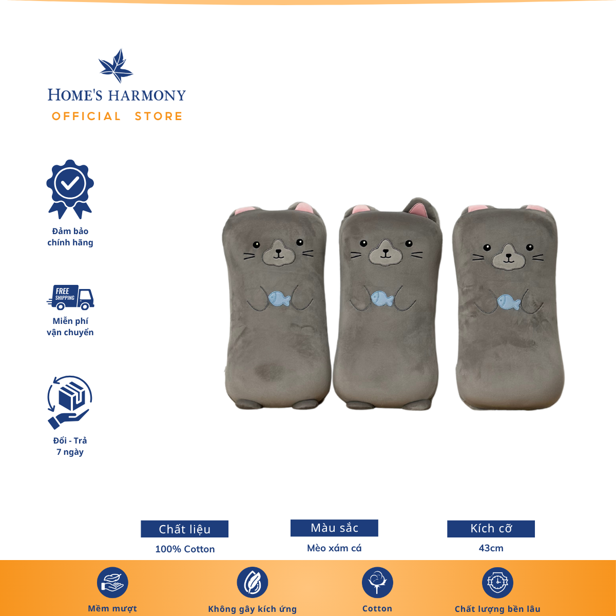 Gối ôm gối lưng 43cm – Cotonsoft nhiều mẫu êm ái