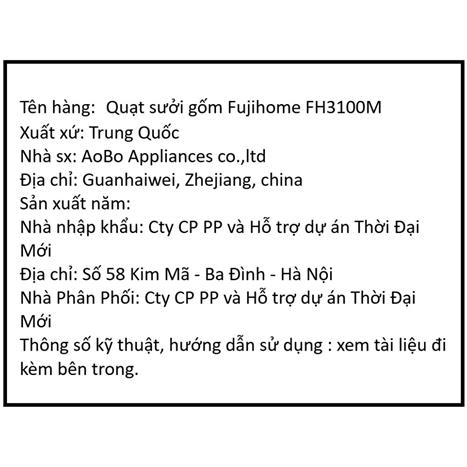 Bạn đang chuyển đến trang bán sản phẩm Quạt sưởi gốm FUJIHOME FH3100M