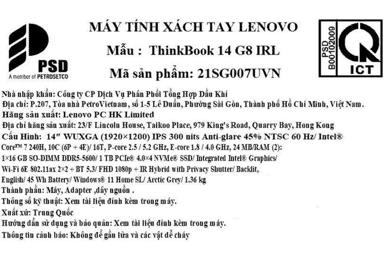 Bạn đang chuyển đến trang bán sản phẩm Laptop Lenovo ThinkBook 14 G8 - 21SG007UVN (Core 7 240H, 16GB, 1TB, WUXGA, Win11)