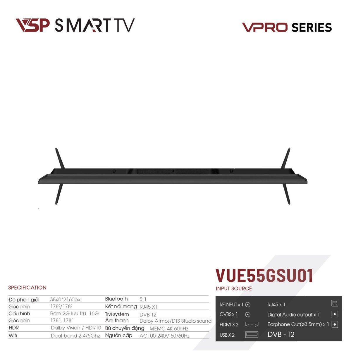 Bạn đang chuyển đến trang bán sản phẩm Smart Tivi VSP VUE55GSU01 | Google Tv 55" 4K Led HDR10 Dolby Digital