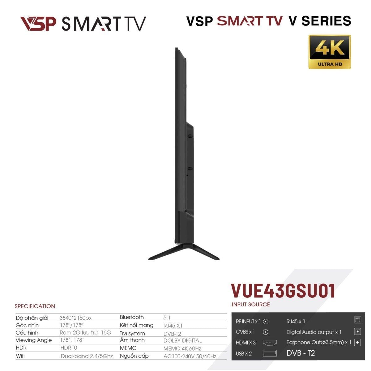 Bạn đang chuyển đến trang bán sản phẩm Smart Tivi VSP VUE43GSU01 | Google Tv 43" 4K Led HDR10 Dolby Digital