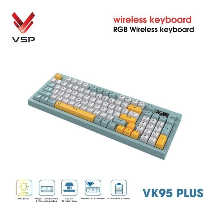 Bàn Phím Giả Cơ Không Dây VSP VK95 Plus | 3 Mode, Min-White-Yellow (KM04-VK95PL0164)