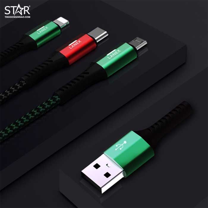 Cáp Sạc Nhanh Micro USB 5.0A Lanex LTC-N15M – Dài 1.2m (Dây dù, Tự ngắt, Đèn Led)