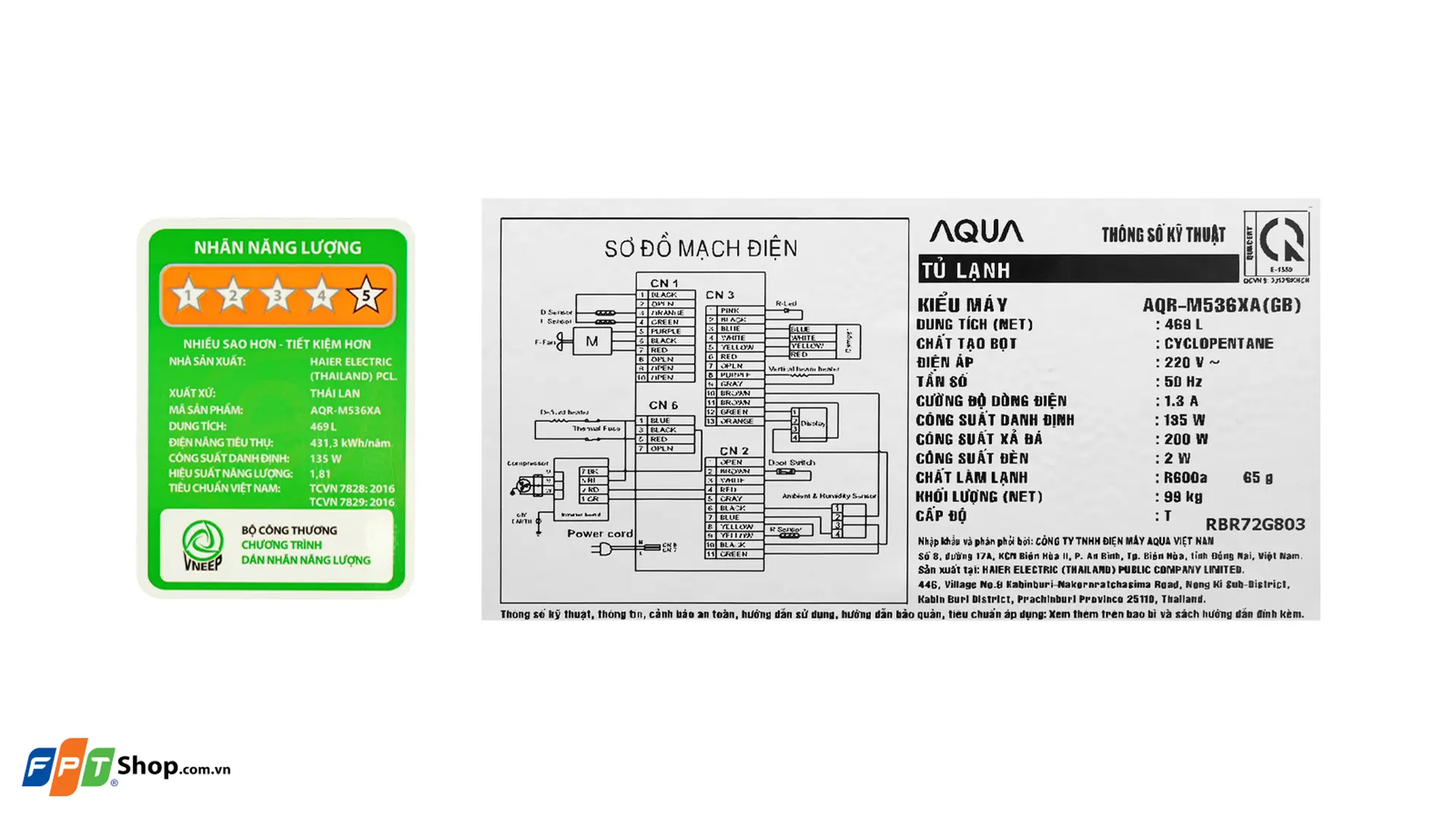 Aqua Inverter 469 lít AQR-M536XA(GB)