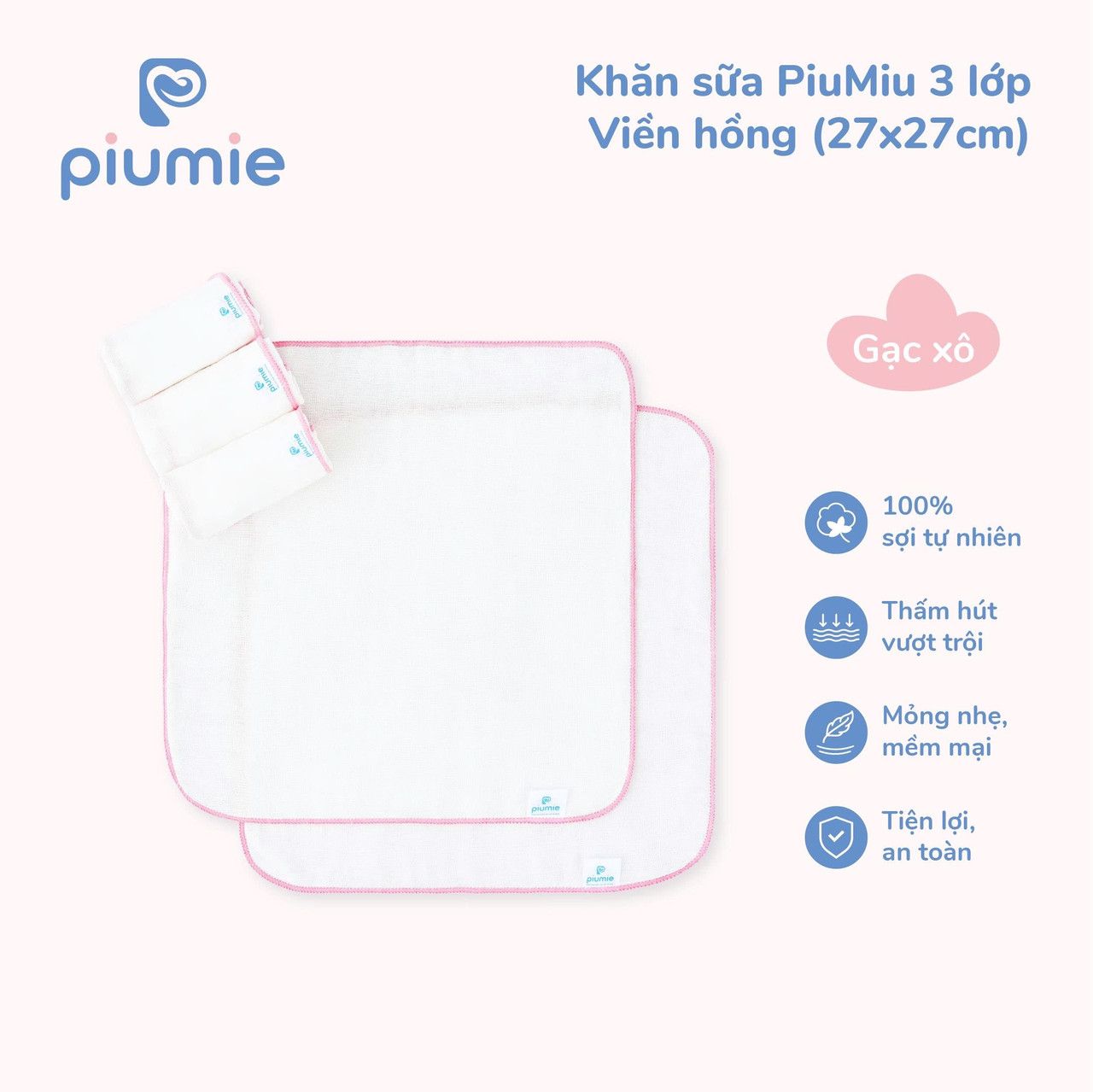 Khăn sữa Piumie gạc xô cotton 3 lớp