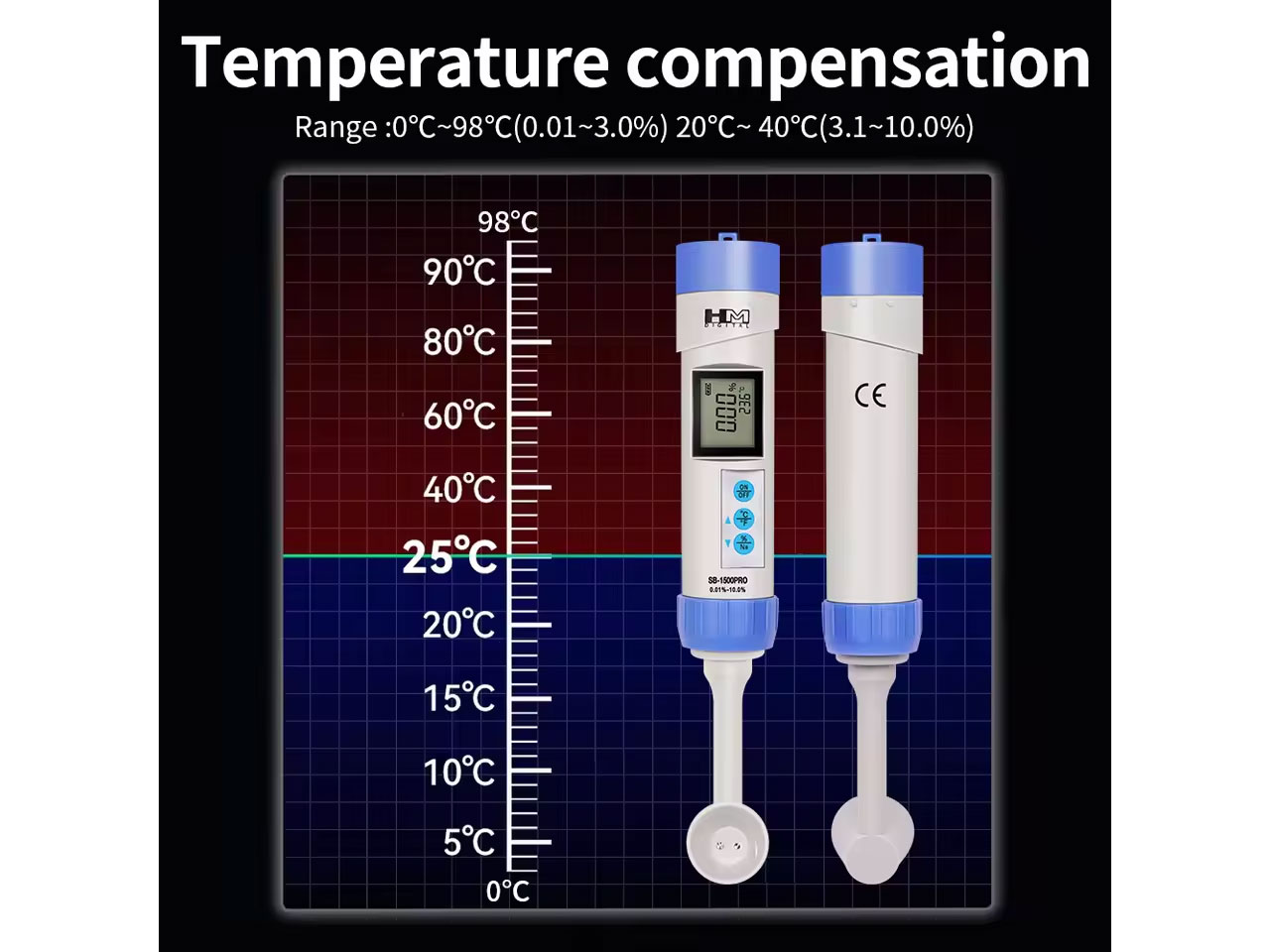 Bạn đang chuyển đến trang bán sản phẩm Khúc xạ kế đo độ mặn trong thực phẩm HM Digital SB-1500PRO