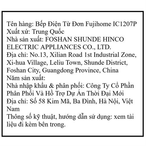 Bếp từ đơn FUJIHOME IC1207P 1900W
