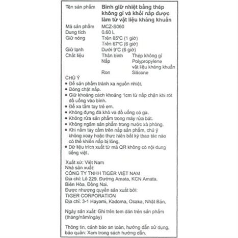 Bình giữ nhiệt Tiger Inox 304 MCZ-S060 | DienMayBestPrice |