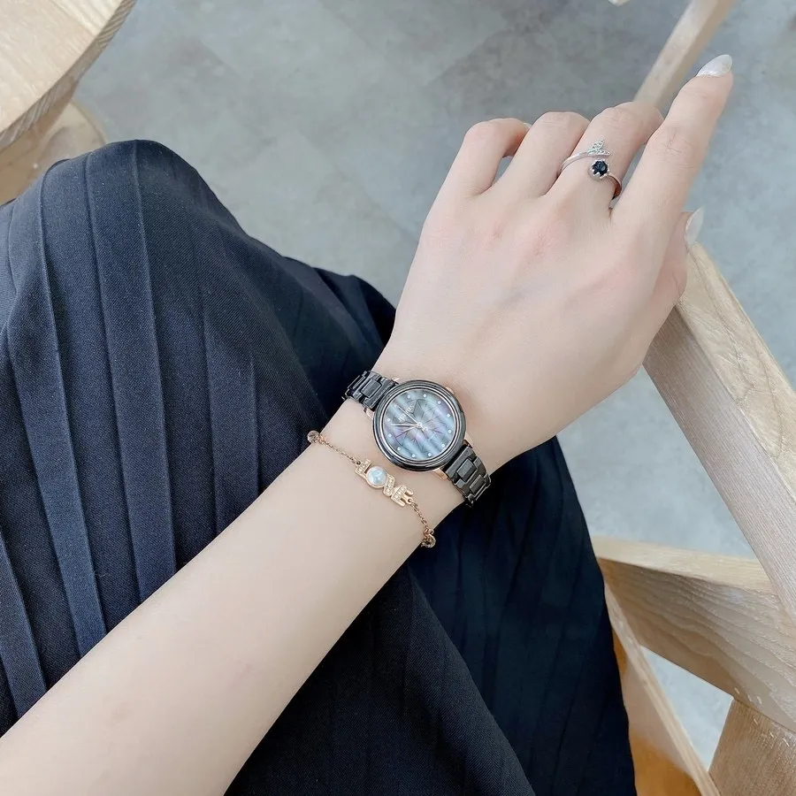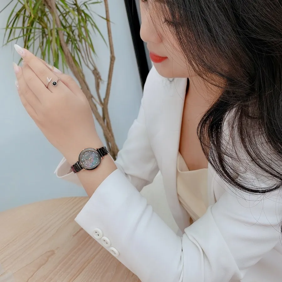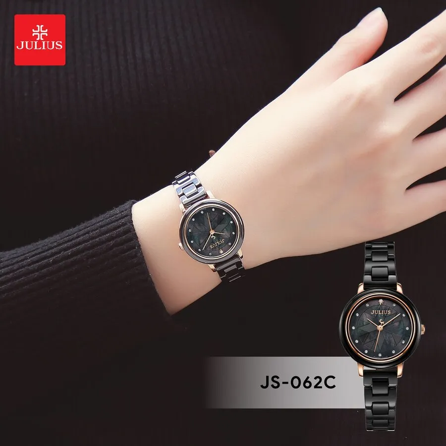 Đồng Hồ Nữ JS-062C Julius Star Đá Ceramic (Đen)