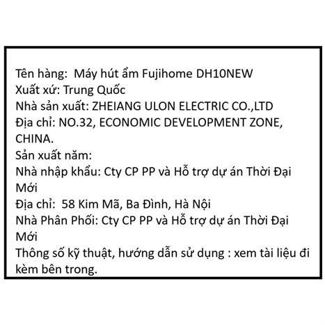 2,338,000đ | 2,750,000đ | 2750000 | FUJIHOME-DH10 | Máy Hut Ẩm |