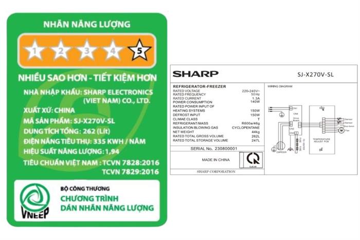Tủ lạnh Sharp Inverter 247 lít SJ-X270V-SL