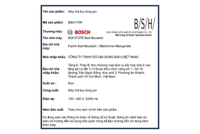 | Máy hút bụi cầm tay Bosch BBS711W Mới | DienMayQuangHanh |