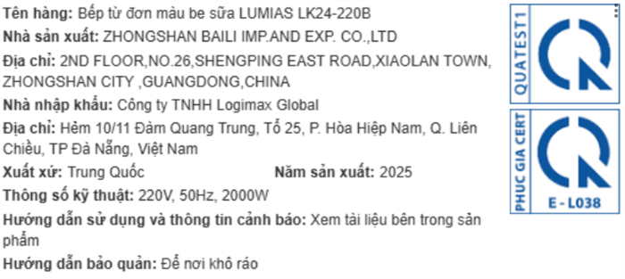Bếp từ đơn LUMIAS LK24-220B 2000W