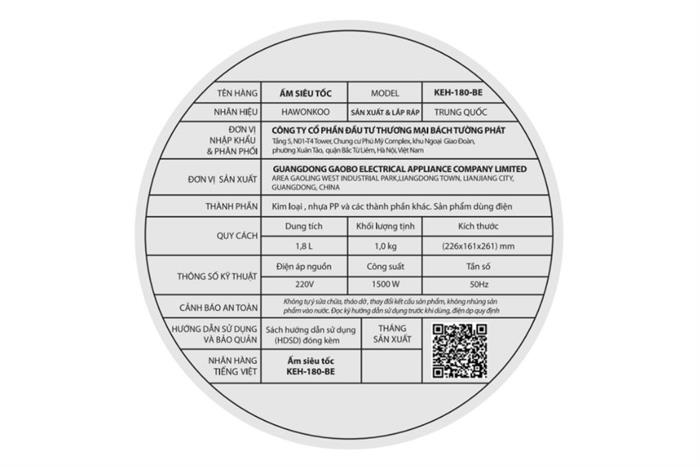 Bình đun siêu tốc Hawonkoo 1.8 lít KEH-180-BE | Dien May Gia Khang |