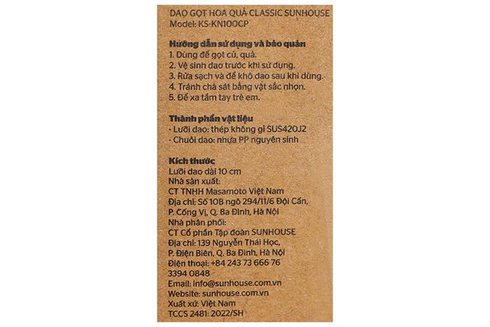 Dao gọt Inox Sunhouse KS-KN100CP