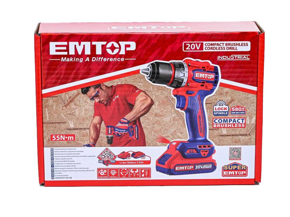 Máy khoan vặn vít dùng pin 20V Emtop ECDL205582 (1 pin 2.0Ah, 1 sạc)