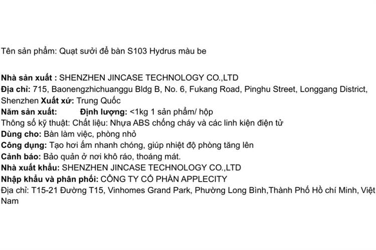 Bạn đang chuyển đến trang bán sản phẩm Quạt sưởi để bàn Hydrus S103