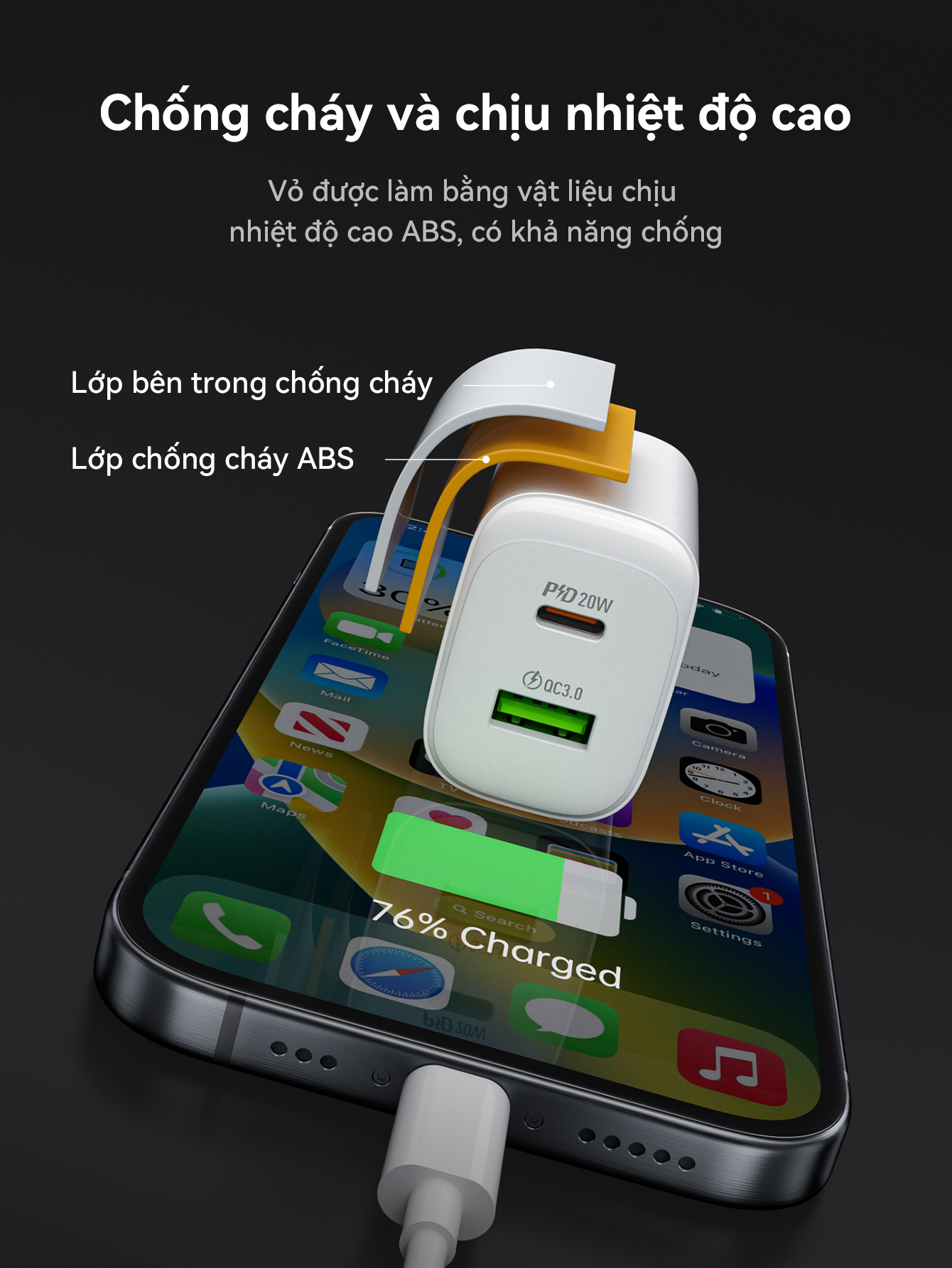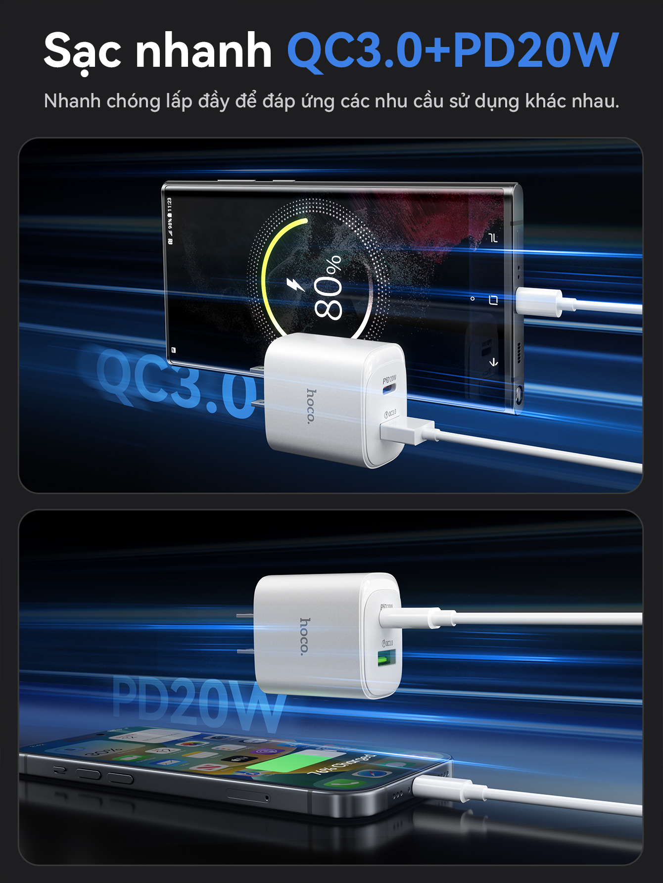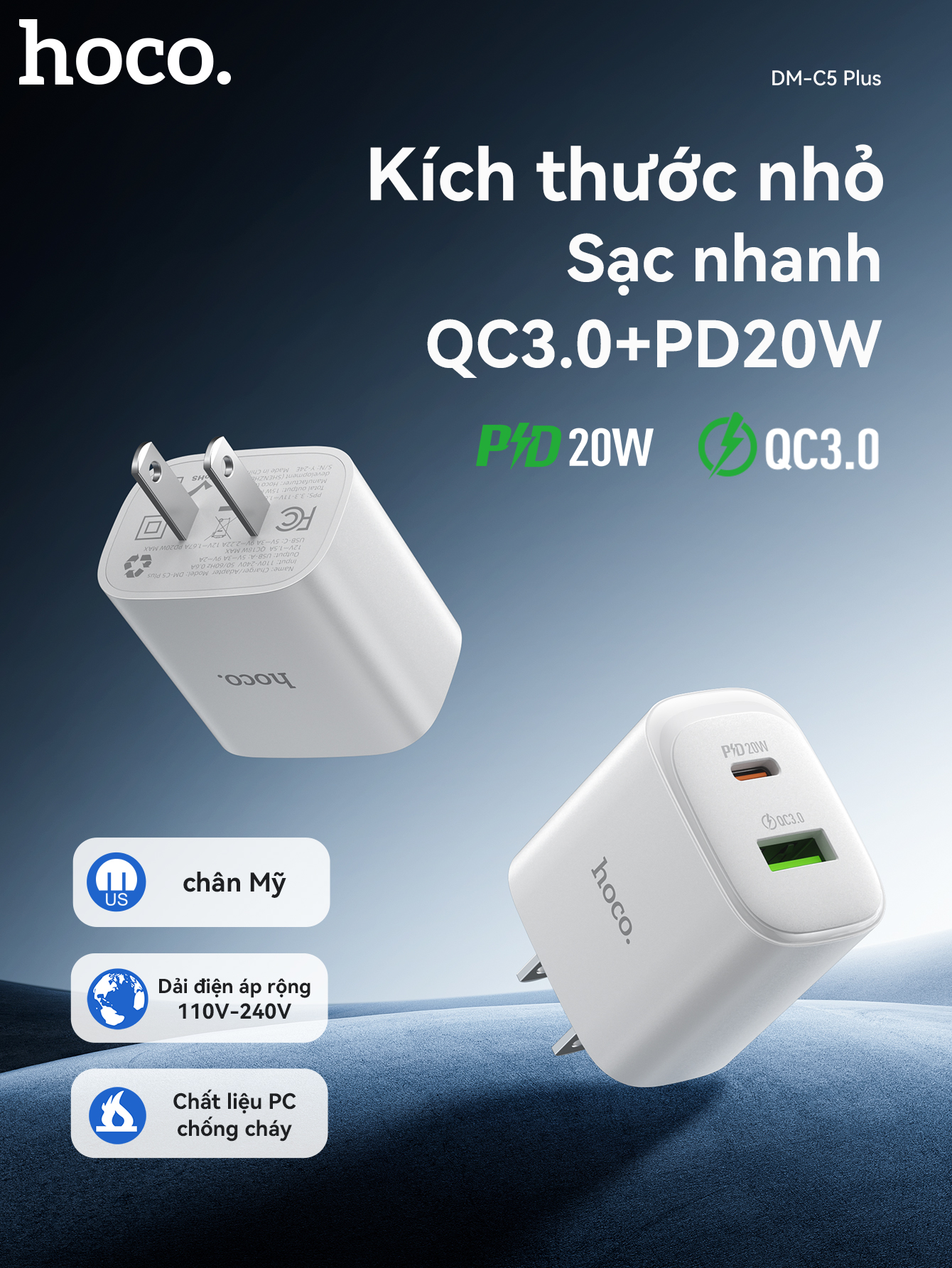 Cốc sạc IP Hoco DMC5 plus 2 cổng PD20w+QC3.0