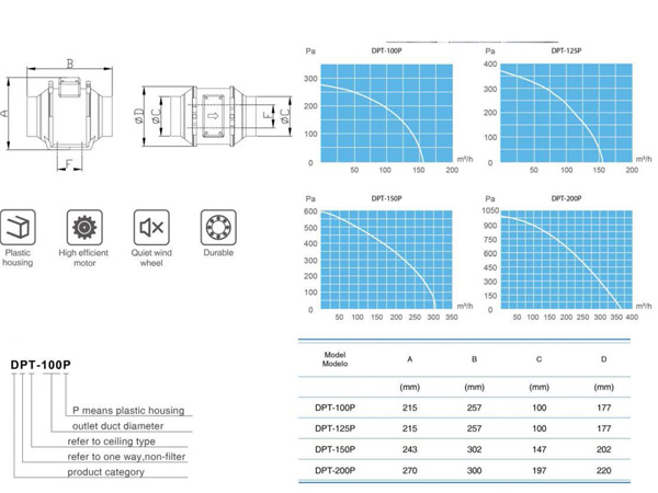 Quạt thông gió âm trần Nanyoo Mixed Flow (2 speeds) DPT-200P