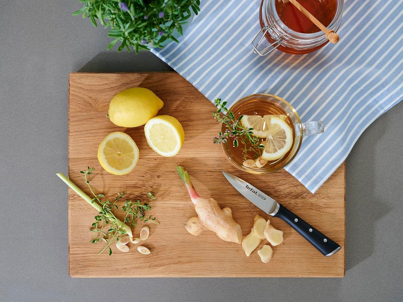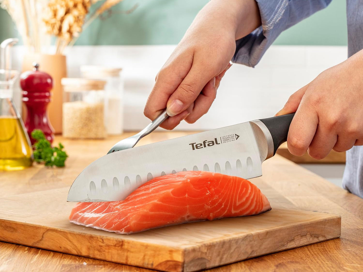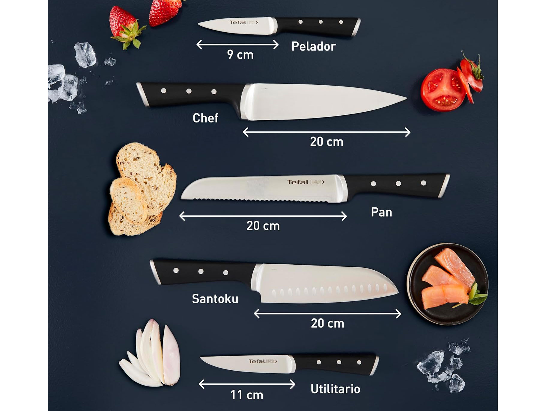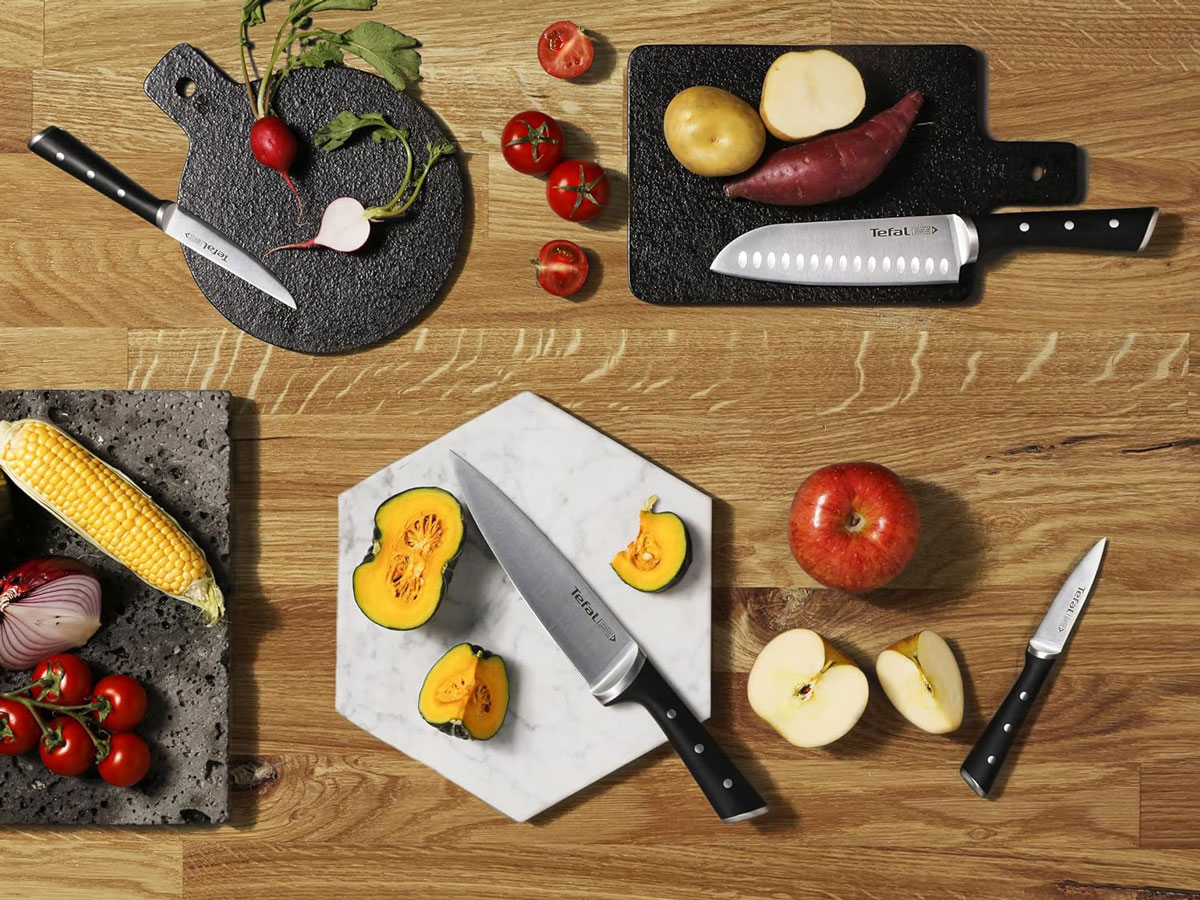Bộ dao 5 món và kệ dao gỗ Tefal Ice Force K232S574