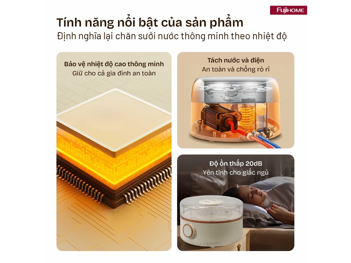 Chăn điện sưởi ấm bằng nước nóng Fujihome HB1820M
