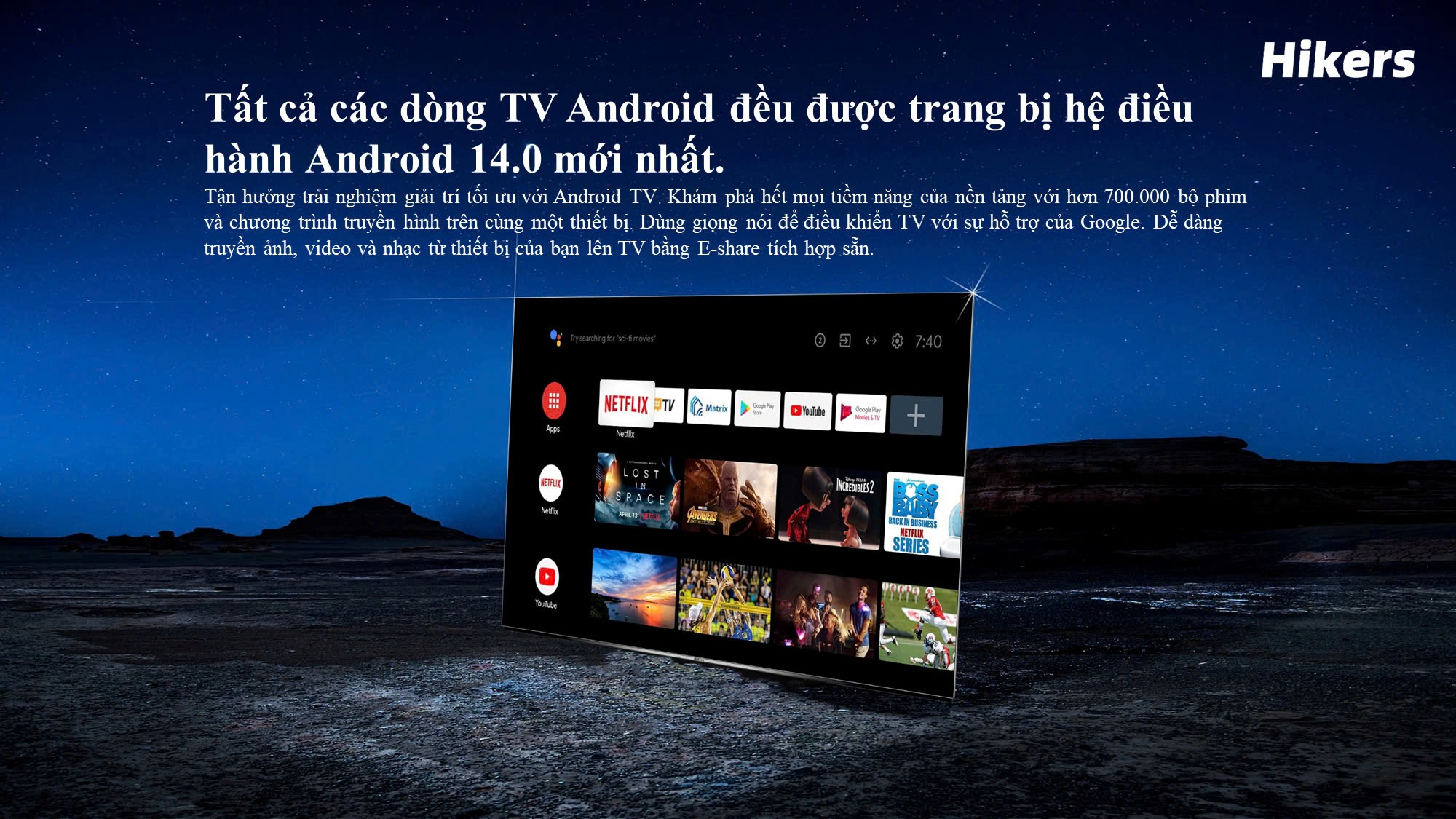 Bạn đang chuyển đến trang bán sản phẩm Android TV Hikers 65 inch 4K HK65A500UA 1.5G Ram 8G Rom