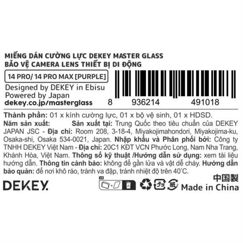 Miếng dán camera iPhone 14 Pro Max DEKEY 3D Camera Lens - Tím