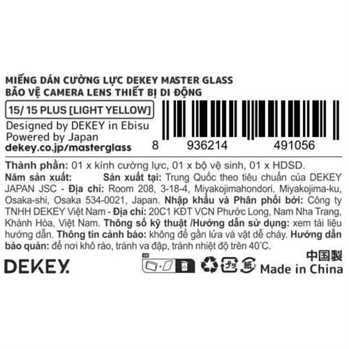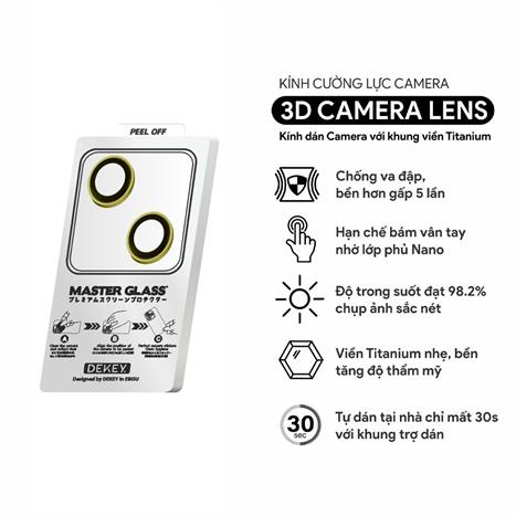 Miếng dán camera iPhone 15/15 Plus DEKEY 3D Camera Lens - Vàng