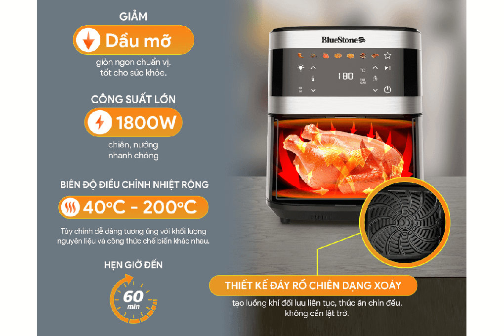 Nồi chiên không dầu BlueStone AFB-5861 - Hàng chính hãng | KingShop |