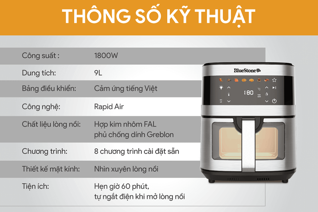 Nồi chiên không dầu BlueStone 9 lít AFB-5886 | Dien May Xanh |