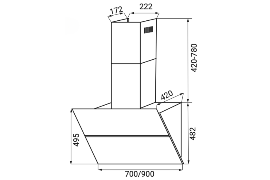 Máy hút mùi áp tường Kaff KF-LUX-AT90H-BK Đen | Bep365 |