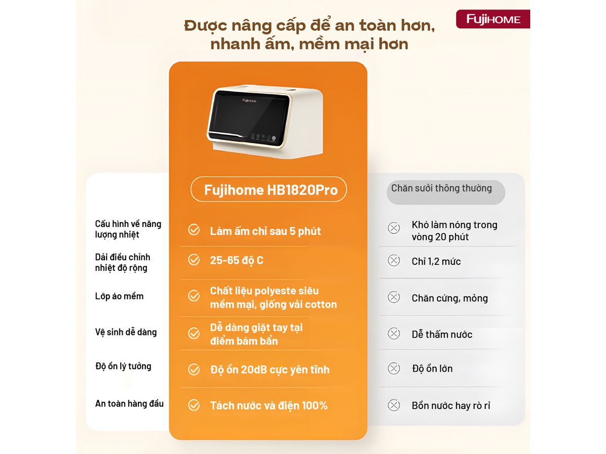 Chăn điện sưởi ấm bằng nước nóng Fujihome HB1820PRO