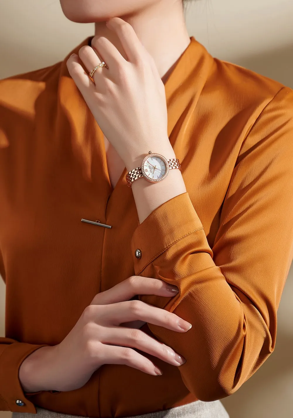 Đồng Hồ Nữ JA-1421B Julius Hàn Quốc Dây Thép (Vàng Hồng)