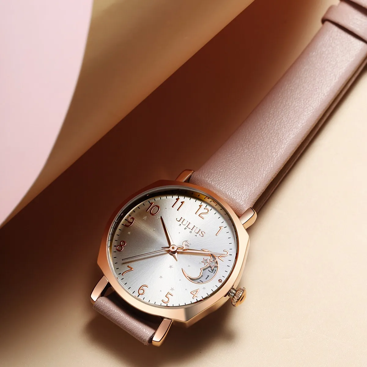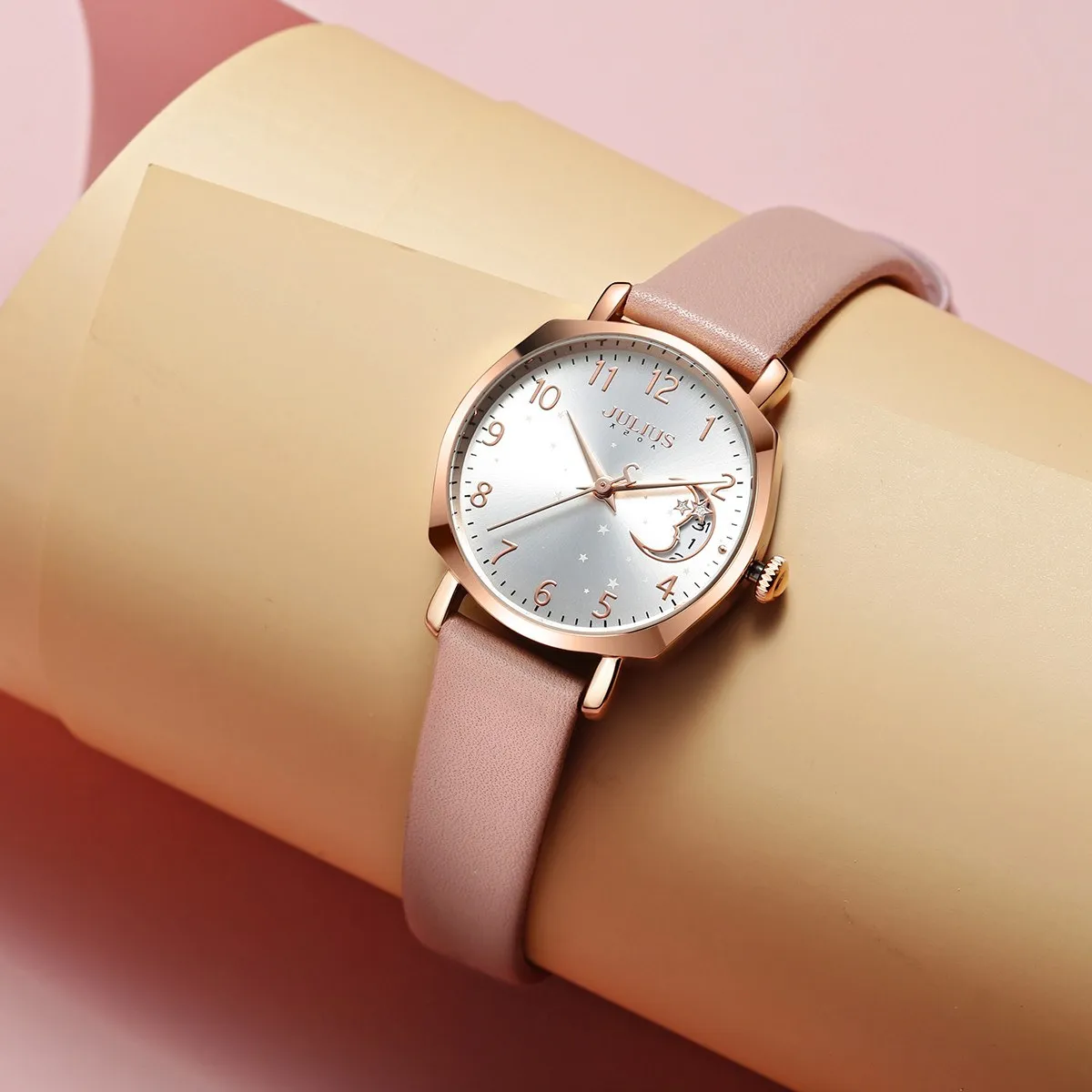 Đồng Hồ nữ Julius JA-1211A 1146 Hàn Quốc Dây Da (Hồng)