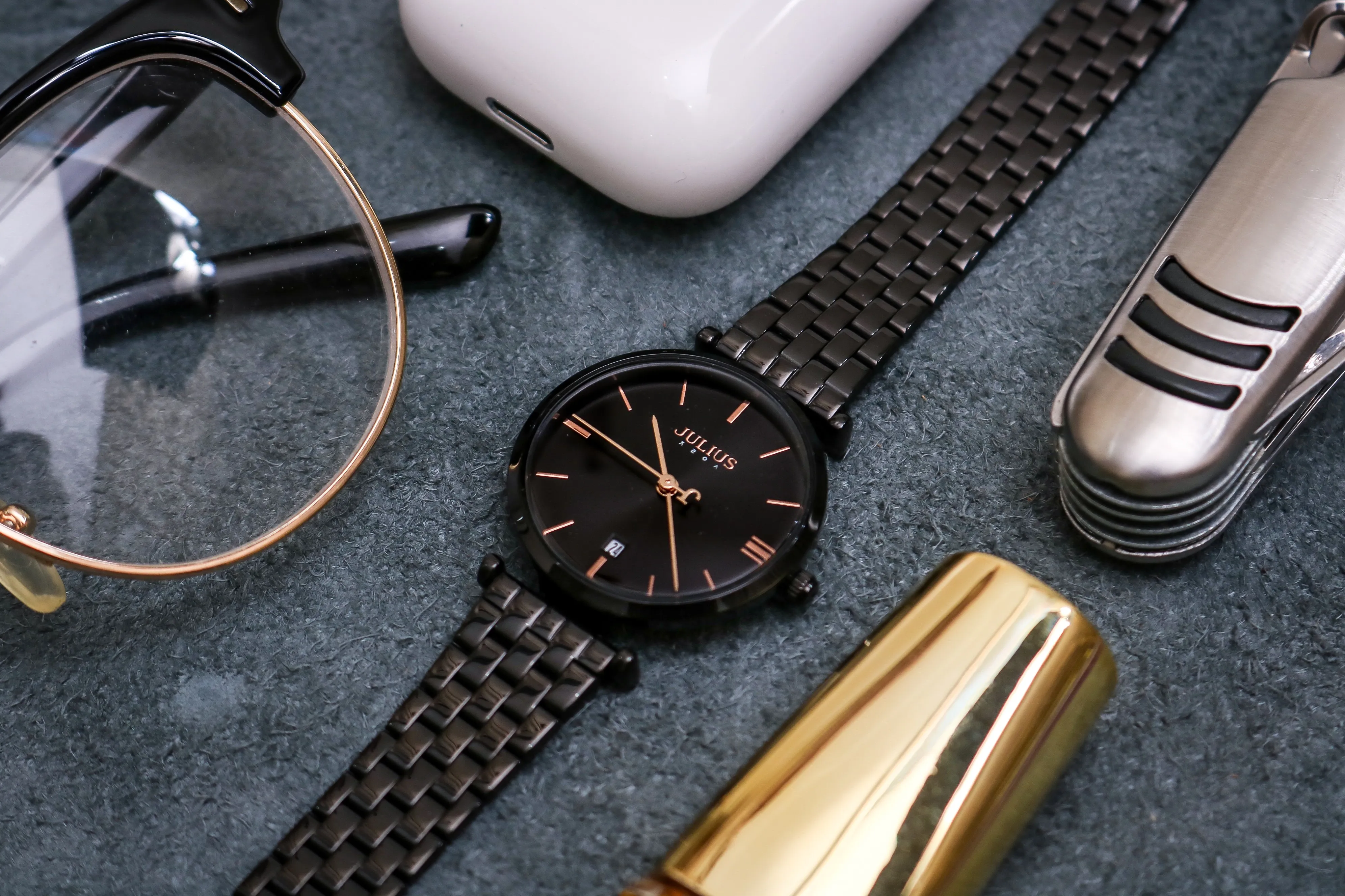 Đồng Hồ Nữ Julius Hàn Quốc Dây Thép JA-1260LD ( Đen)