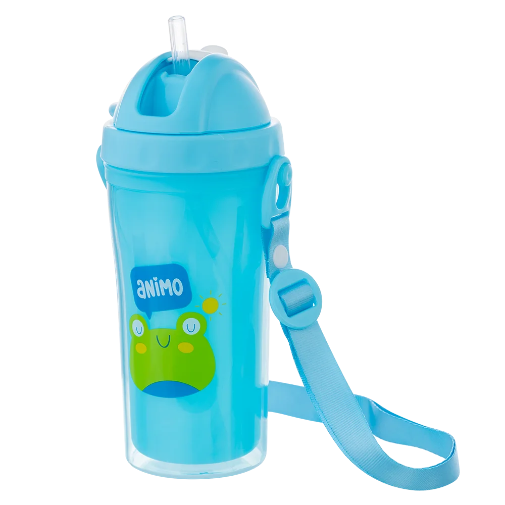 Bình tập uống cách nhiệt Animo (340ml, xanh, dây đeo, RK3415) | Con Cung |