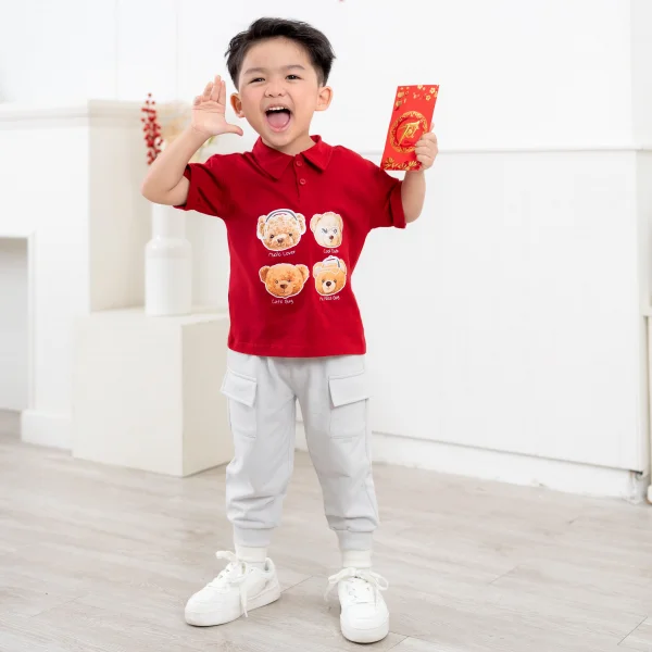 Bộ polo bé trai tay ngắn quần dài Animo HN1125004 (1-6Y,Đỏ-xám, DD02)