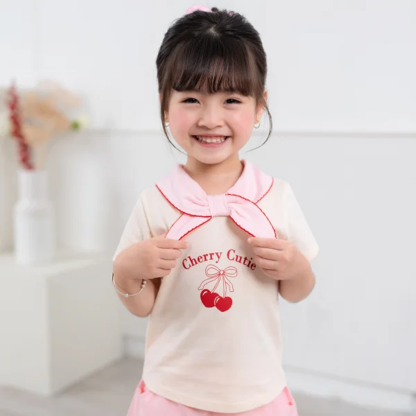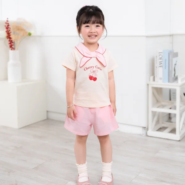 Bộ bé gái ngắn cổ nơ Animo LU1125042 (1-6Y,Kem-hồng,TT01)