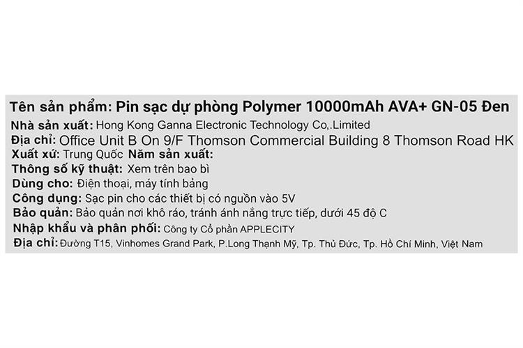 Bạn đang chuyển đến trang bán sản phẩm Pin sạc dự phòng Polymer 10000mAh 10.5W AVA+ GN-05